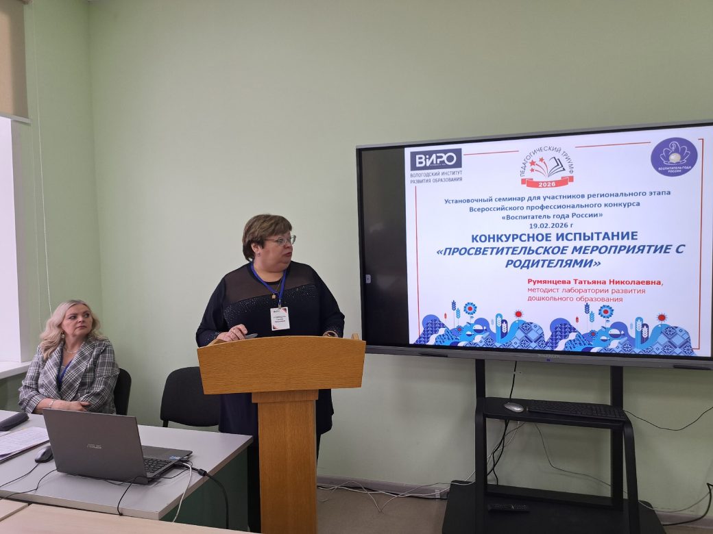 19 февраля на базе Вологодского института развития образования состоялся установочный семинар для участников регионального этапа Всероссийского профессионального конкурса «Воспитатель года России» в 2026 году.